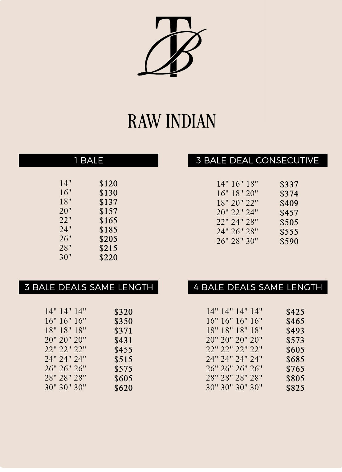 Raw Indian – 4 Bale Deals Same Length